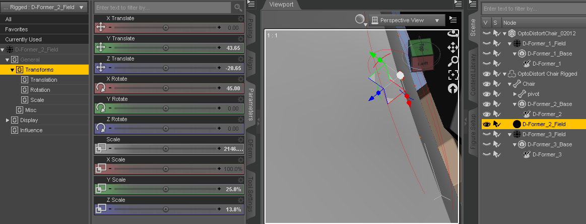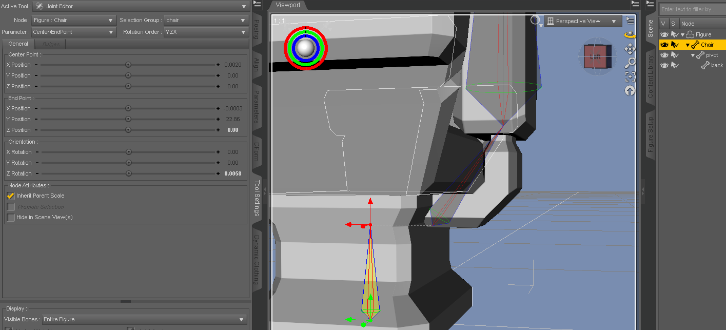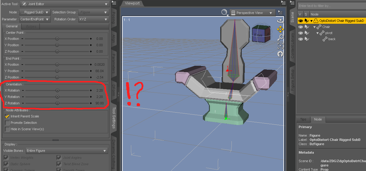 It appears the XYZ move the chair around stuff for the 'Rigged' back chair, have gone completely nuts on me. Aghhh!