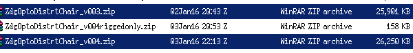 Yesterday's zip had only parented objects, I replaced them with just the chair seat and a Bone rigged with back chair, and it still got larger rather then smaller (not by much, but noticeably). 25MB vs 26MB.