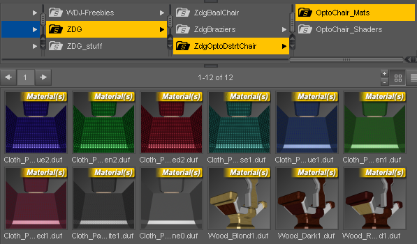 I'm also going to add a couple more padded leather colors (I like that purple/magenta). I still need to make up icons and 'tip' images for the 'shader' folder, tho that is more wait for renders, then tedious stuff.