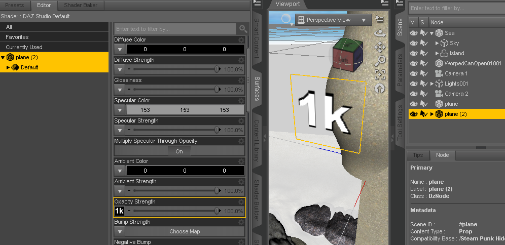 I have that nifty scene I set up for my Rock shader icons, and I was going to use something like that for the chair and Mat preset Icons. However it looked so good with just the head lamp in a empty world, I just went with that, lol. As for the shader icons, I am doing them here in this Shader Icon scene. The sky-dome is from "Sea Scapes" to give reflective stuff something to reflect. The light set is from my test chamber. And as you can guess from that little "1k" floating in mid air, the Icons do not get any Post Processing at all, what you see is what you get (with no exaggerations at all). It's not a Promo, it's an icon, lol. I got the idea from all the Fisty and DestinysGarden shader icons I've seen floating around my Content library, and decided it would be incredibly easy to set up a "Render and ship-it" scene for that using some stuff I had.