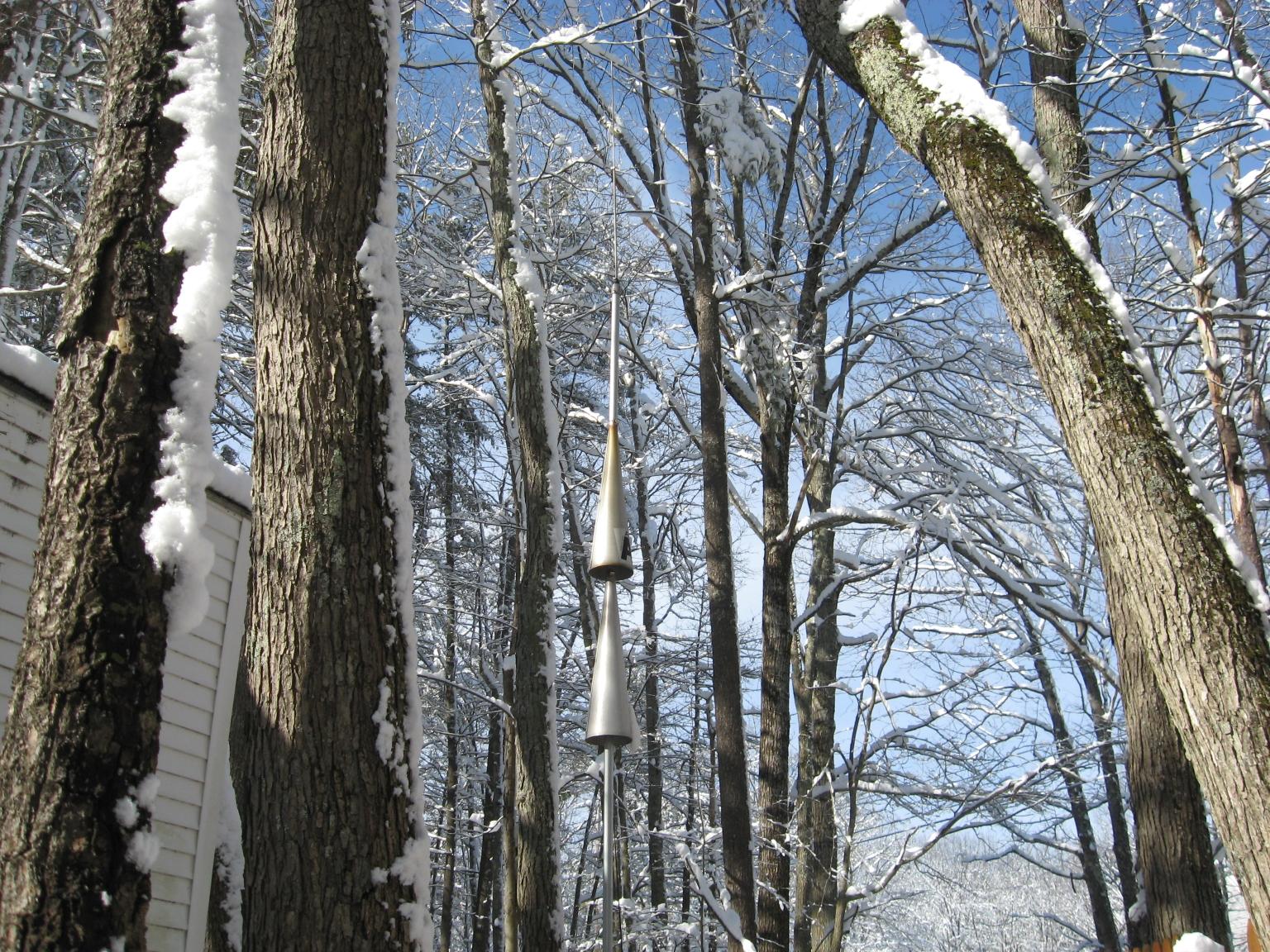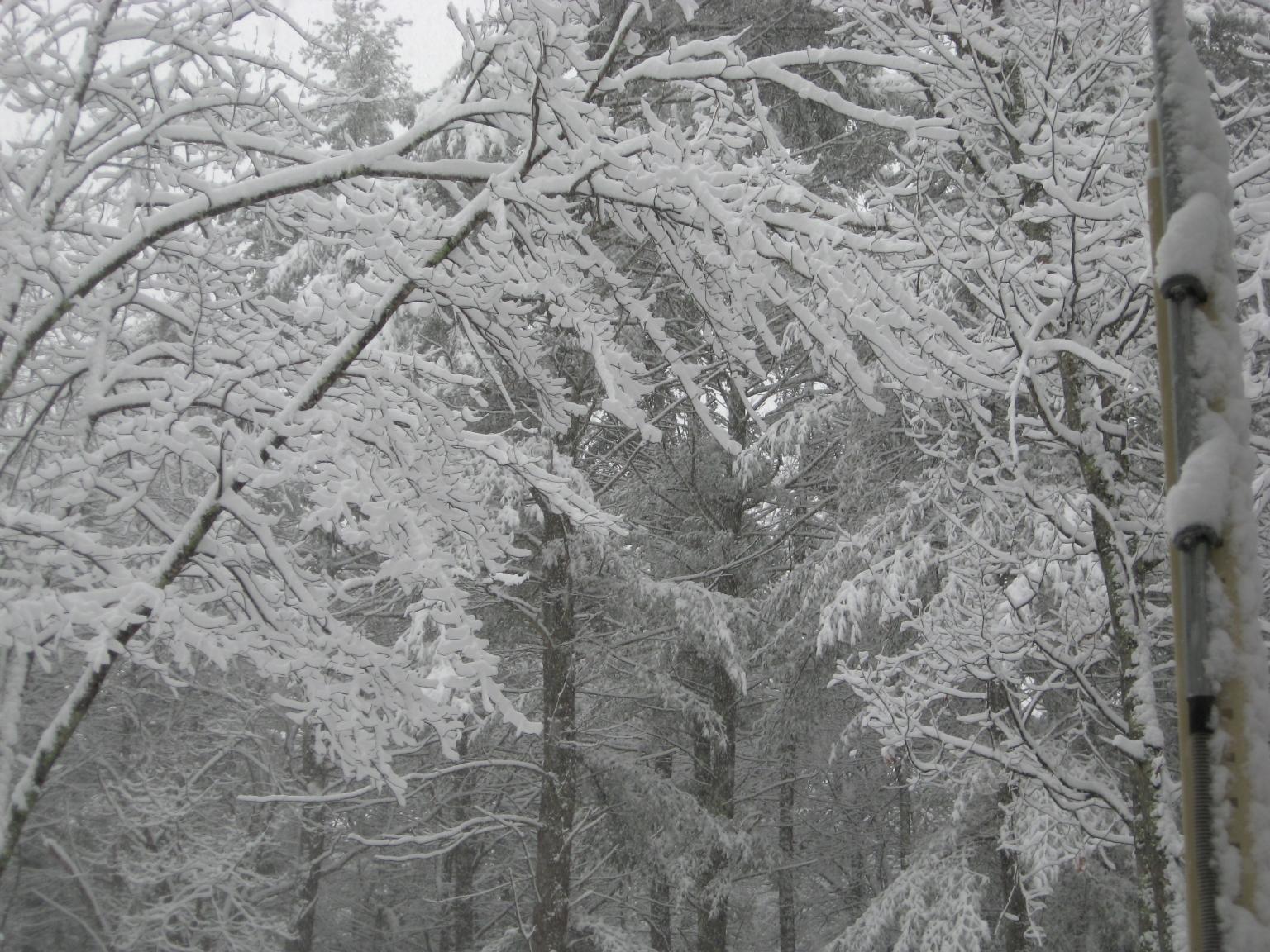 And yes, that was just taken. The thing that's not so good about all that snow sticking to everything that looks so pretty, is it is bring limbs down on the power lines. Just small ones so far, tho it is enough to cause power flickers every now and then. BTW, that small antenna tower ("The Harpoon") has been hit by a few larger branches years past, one left a rather nice "Battle scar" on the side of my Blazer I had at the time. Bounced off the roof, split in half on the tower, and left a nice dent on the side of the Blazer.