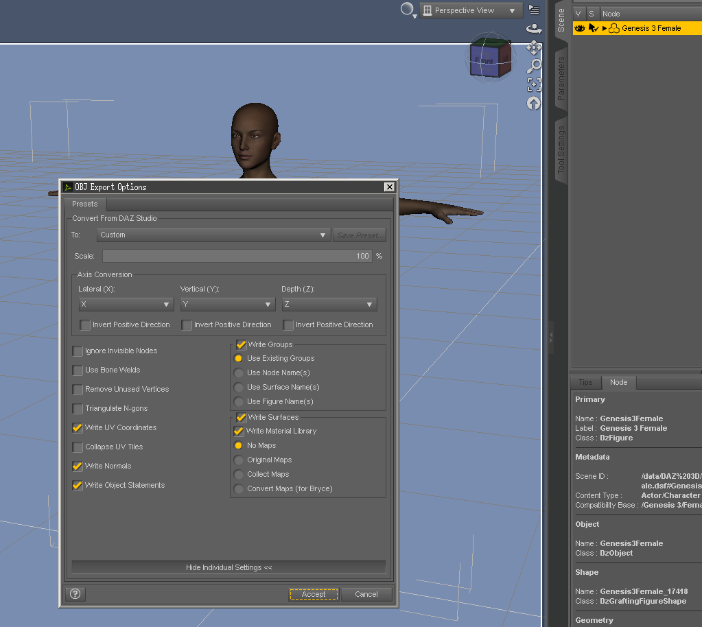 Now is the G3F joint bend shaping morph being exported properly to all the modeling programs out there, that is the question?