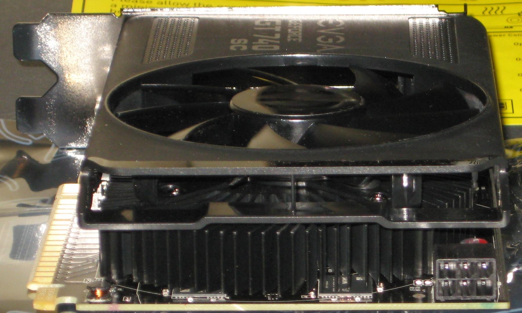 The GPU is only getting up to about 50c with the room temp at around 75F (about 23.888c), so the build quality of the cooler appears to be sufficient. I have doubts about the openings at the front of the card where fan exhausts will be fighting the intake fans on the front of the computer, tho I guess it is neither here or there. It's kind of a shame, because EVGA did an incredible job on the card, the exhaust vent on the back slot is nice for rear exhaust computers, the component layout looks really good, and the PCIe Auxiliary power connector is very much appreciated for use on "More affordable" motherboards. The chip under it all is just a, well, The GK107 chip is just not worth it. It's a waste of money, waste of watts, and a waste of the silicon it's made from (in my honest opinion). nVidia could have done a hell of a lot better with that sixty watts, and should have. your better off getting two or three GT730 (GK208) cards for Iray then a single GT740, I am not impressed.