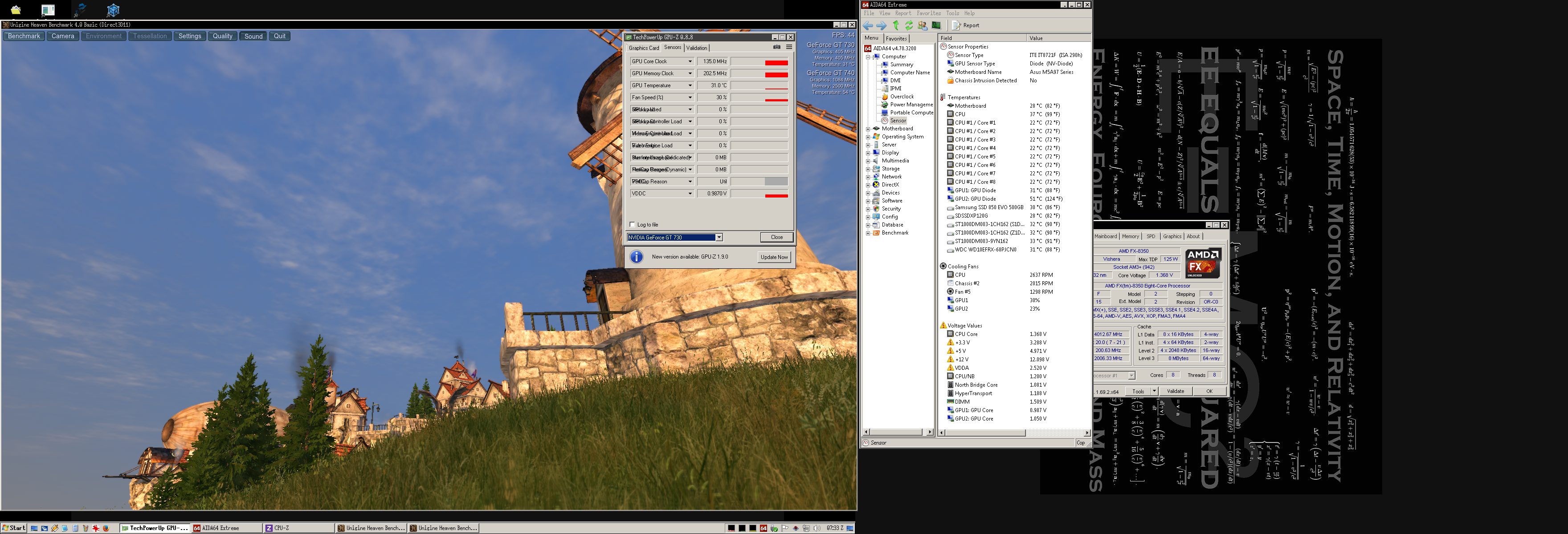 That was literally the last screen-cap I took before the power went sporadic. I pulled out the GT730 to do tests of just the GT740, and before the benchmark ended, the power failed spectacularly. I never knew such colors could come from the LED light bulbs in the kitchen. When the power came back, the G220fb gave up the ghost on the BIOS boot screen.