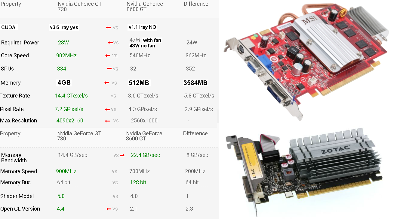 So, the debate I've been pondering is this. Is it worth it to spend forty more dollars (USD) for a card that uses almost three times the watts, for only a ten minute improvement (about 30% faster then the GT730) in Iray render times, that is still excruciating for setting up scenes and stuff. Especially given it only has 4GB of VDDR5 to work with Iray scenes.