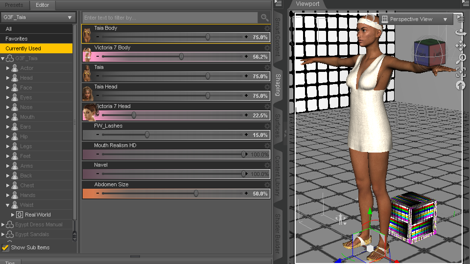 Well, I decided on a whim to look at some possible alt shader settings for FWSA Taia from the Egypt bundle, and it is still a WIP.
