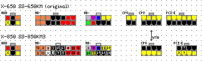 So, I've picked up another PSU in the hopes of testing more graphics cards (assuming the breaker dose not explode), and I was stupid enough to think that I could just plug in the old cables into the new PSU and be on with it. Apparently the 'KM3' is vastly different from all there former units.
