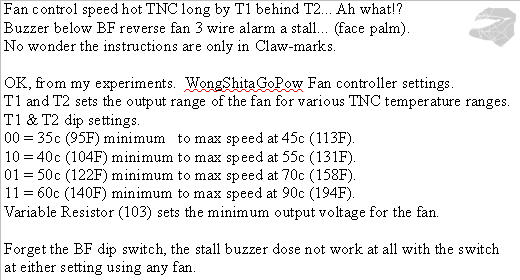 I need a setting for 30c (86F) minim to max at 40c (104F). Unfortunately it looks like a PIC chip is doing all the work, so that may not be possible at all (I don't have a PIC programmer.). I may be able to fudge it by soldering a resistor in parallel with the TNC plug.