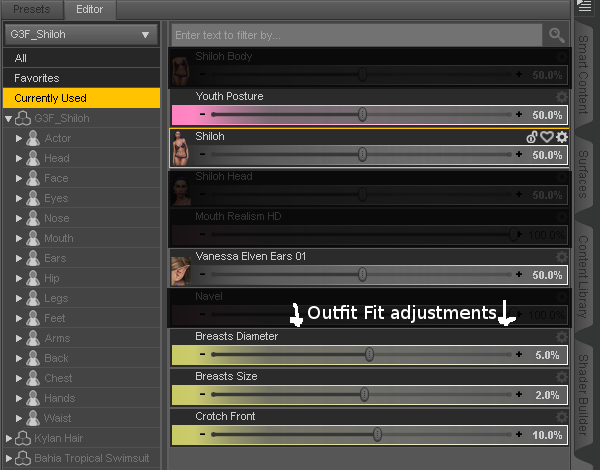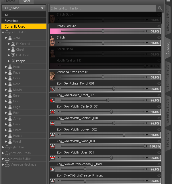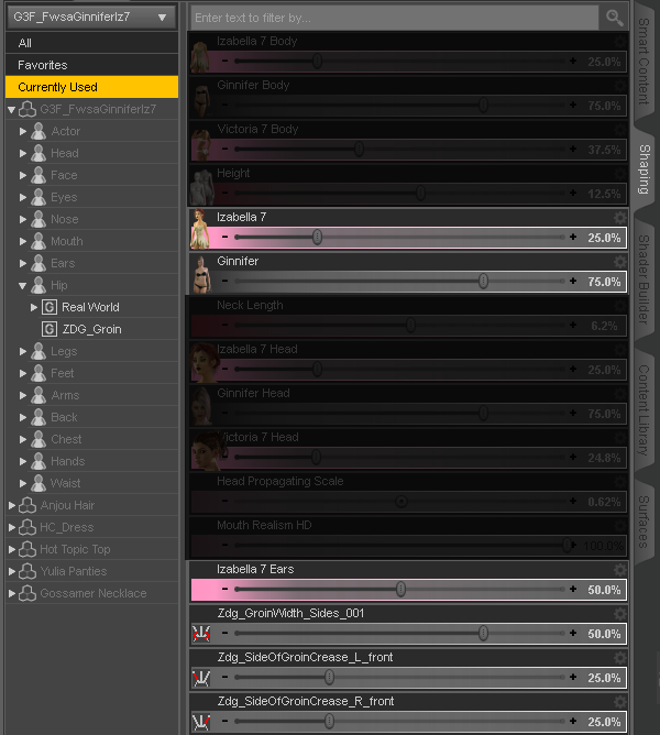 I'll be completely open with what settings I have fussed with thus far. I did not do much with Shiloh's basic shape, tho I did look at a possible variation "Down there" with some new dials I added to the set. I'm not totally sold on those specific settings, tho the dials appear to work well.