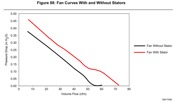 Yea, that is not a 30% improvement over a no-stator high flow fan. Over the cheesy LED glow fans (green in former chart) it is a huge improvement, lol.
