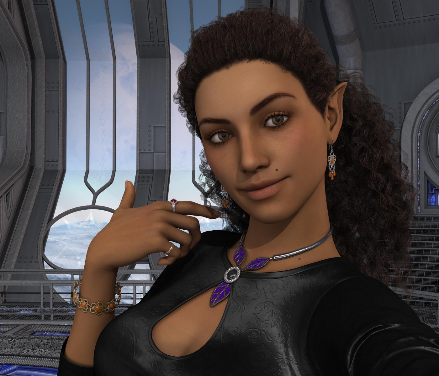 FWSA Shiloh checking out the Modular Lounge from the Future Quiet deck on the GIS Sigma ship. I think she is ready for a night out with that Keyhole Style and her hair done up in the Kylan style. The reserved Ring Collection with the Ginnifer bracelets and ear rings are a nice complement to the Wild Spirit necklace. Perfect moment for a selfie, lol.