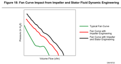 More air flow at lower RPM, can be less tonal noise as well from the fan at the same CFM output. Graph from the BTX Design spec, 2004 Intel (graphs for reference only).