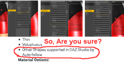 Looks like a really good bargain, and for the base figure it is. There is a really good set of morphs with Tj7, and when combined with "Growing Up" by Zev0 makes for a solid set of morphs to add a hint of real human to some of the more extreme figure shapes out there. (oops, forgot about "Abdomen Size" dial from "Shape Shift")
