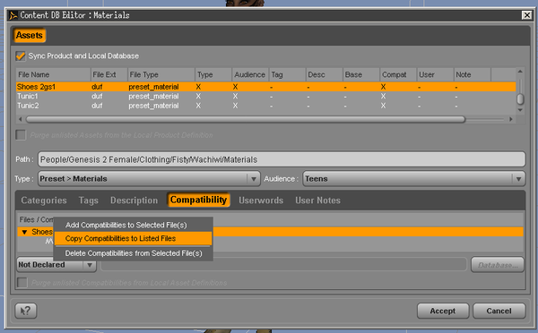 3) right click the item in the lower list pain to "Add Compatibility to Selected files"