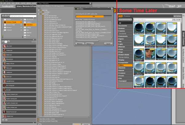 Now I still had to "Reset Database" and "Re-Import Metadata" with the CMS thing, and that took a bit more time. That fixed the broken Daz content, tho now I'm not sure where all my auto-fits went, lol. First I need to remember where I saved all of them clothing and hair "figure/prop asset" files, that I had diligently placed into the proper Smart tab categories somehow.