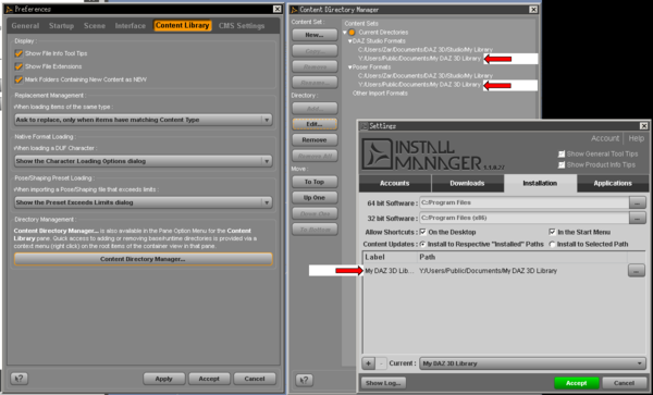 To start with, Simply changing the drive letter in the Daz Studio settings wont make DIM put the stuff there, DIM also needs to know where that path is, and forced to use it as well.