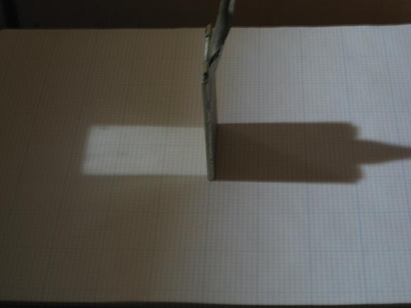 Now using the light over my stove, My clipboard with some graph paper, and a mechanics mirror. I can show you exactly what the "Mirror-Pillar test" should look like, almost exactly (minus the handle part of the mirror, and it's shadow).