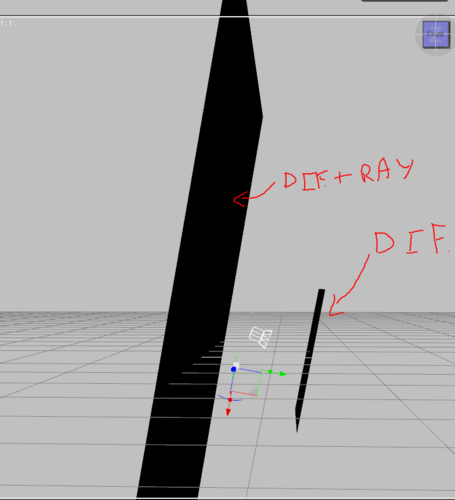 I guess this is why, in DAZ, the diffuse light sent by one surface is not visible on an adjacent one if is is only diffuse. This is close to what happen when working with perfect diffusers in real life. In DAZ you can add a ray component in the shader mixer to see some rays, but you then have to increase sample cone and samples to begin to see it, this in not cool and efficient. So approximations must be made. In DAZ, for this I guess the fastest way is to use the existing tools provided to fake "globally" the presence of a surrounding environment.