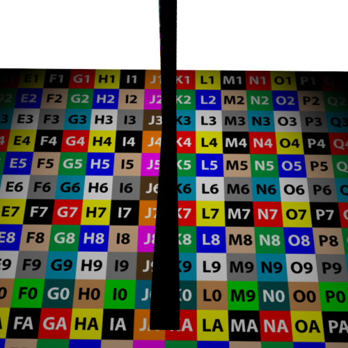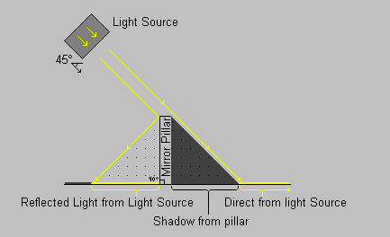 The pillar is 2in x 2in x 4ft. Black diffuse, White Specular, 100% reflection strength.