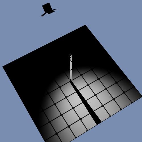 The plane is 8ft in size, and tiled with a gray graph paper of sorts only on the diffuse box.
