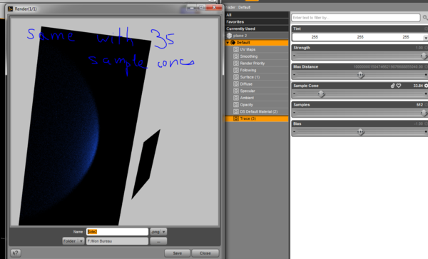 I just saw your thread, and all the things that you are observing here seem well... normal. So I made some tests on my side with a plane, a pillar and a cone. I just used another pattern on the floor. Well everything seems to correspond to the laws of ray tracing, I don't see any particular abnormal behavior. I don't know if I already told you but basically I'm a physicist specialised in light and matter interaction at all levels including the visible photometry and colorimetry. I only mention that now in order underline the fact that I'm really sure of what I'm saying since I spent years "ray tracing" several hours a day, and seeing visually how rays behaved (using this : http://www.optis-world.com/products/software/speos-LM-OW.html almost everyday).