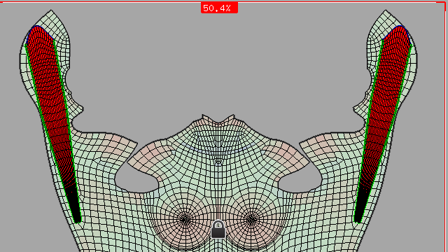 I may be able to as I started to type, export the torso and Lekku as a single object, and then resize the Lekku maps to scale of the much larger torso map/island. then possibly place them on the map. bring the result back into hex to remove the then unneeded torso mesh, leaving just the Lekku. It's only a thought for now tho. Hmmm. (green outline is the back of the head and back on G8F UV, White is my best single map attempt so far)