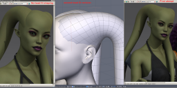 I've run a quick test with the Transfer Utility and as expected the weightmaps of the back and even the arms get projected to the Twi'leks tails. Maybe I rig those first and merge the rigging later. I just took the second sample of ZRemesher and I don't like some topology above the eyebrows and that the tails tips (uneven number edgepole) but it already fits perfectly and follows all Character shapes because its a GeoGraft. Here are some screenshots.
