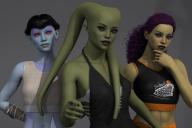 The past few days I was cobbling together some stuff. From Left to right, FW Wanda does NOT include glowing red Chiss eyes. I ended up making a glowing edge map of one of the included maps and fussing with settings for a day to get it that far, I am pleased with the results tho. FWSA Krisandra does not include a Twi'lek Tekku prop, that part is still a WIP.