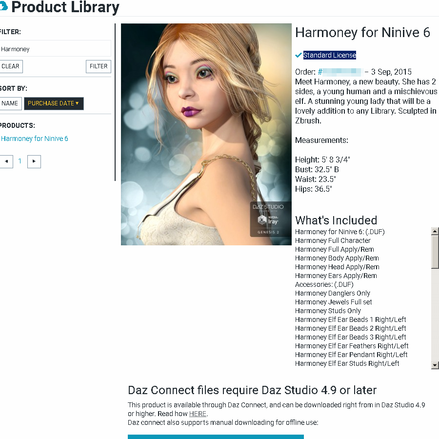 Sorry about that, I'm not sure what happened with her since 2015. I do not know what the product number was for her, where her support page is that lists who made her, or who the PA is for that matter. I did save her promos for a quick "what do I have" list, and I do not remember what the number-letter string (3aEPSB ?) in the filename for the PA referred to, that was too many cups of coffee ago, and the website "Product Library" listing for her is of no help. I am aware of what happened then and why I thought Ninive6 was an elf. Out of four add-on figures for the Daz original, three have elf ears, and the forth (Larian) would make a cute elf with her face makeup as shown above. Unfortunately for the bunch of them, Ninive6 was released about when Generation 7 was unleashed upon the world and the Daz Forum upended itself during a change in layouts and technical server stuff behind the scene, resulting in Ninive6 being completely forgotten about other than what I wrongly thought was "The Last Adult Elf Daz Original". That's not to say there weren't other Elves...