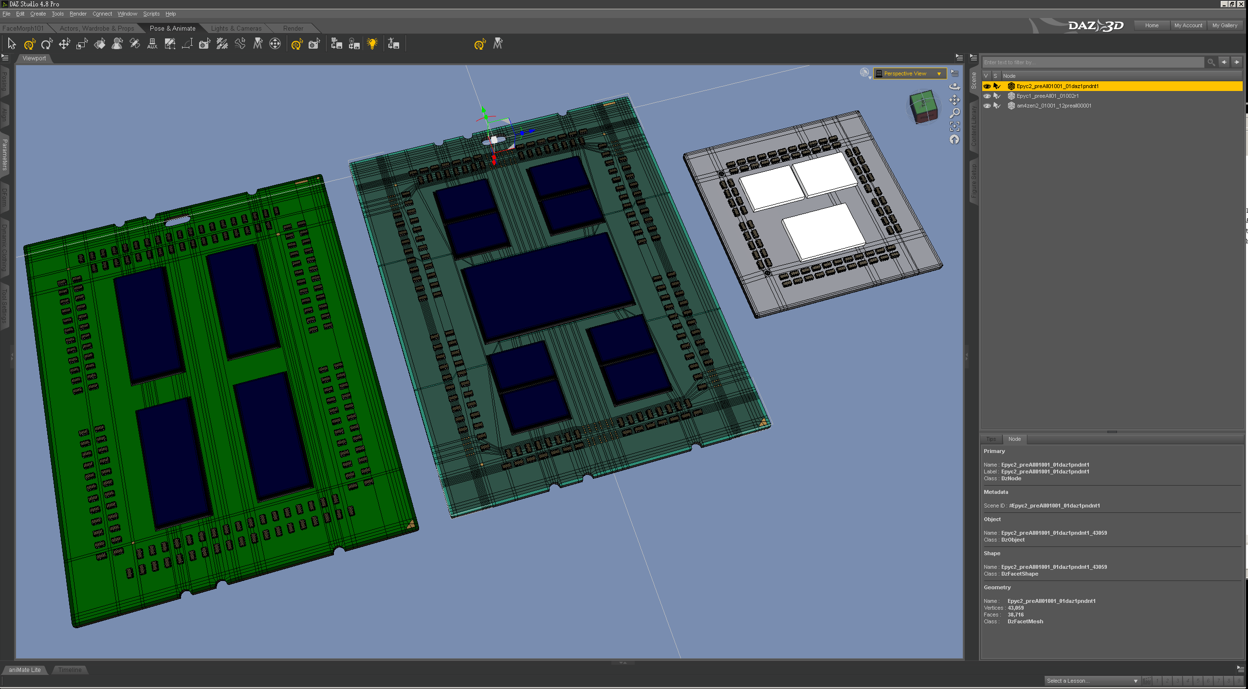 The geometry for the Epyc2 is mostly done (seen in the first render of this post), it's just not UV mapped, and I would need to replace all them caps any way with UV mapped ones. The EPYC1 hasn't been touched, so it's dimensions are still wrong. And there is the AM4 Zen2 that is in uncertainty limbo. I made the mistake of UV mapping the caps on the AM2Zen2, and it worked so well that I realized I would need to go back and UV map the other hundred caps on both EPYC models, a tedious task I do not look forward to, lol.