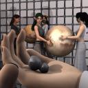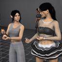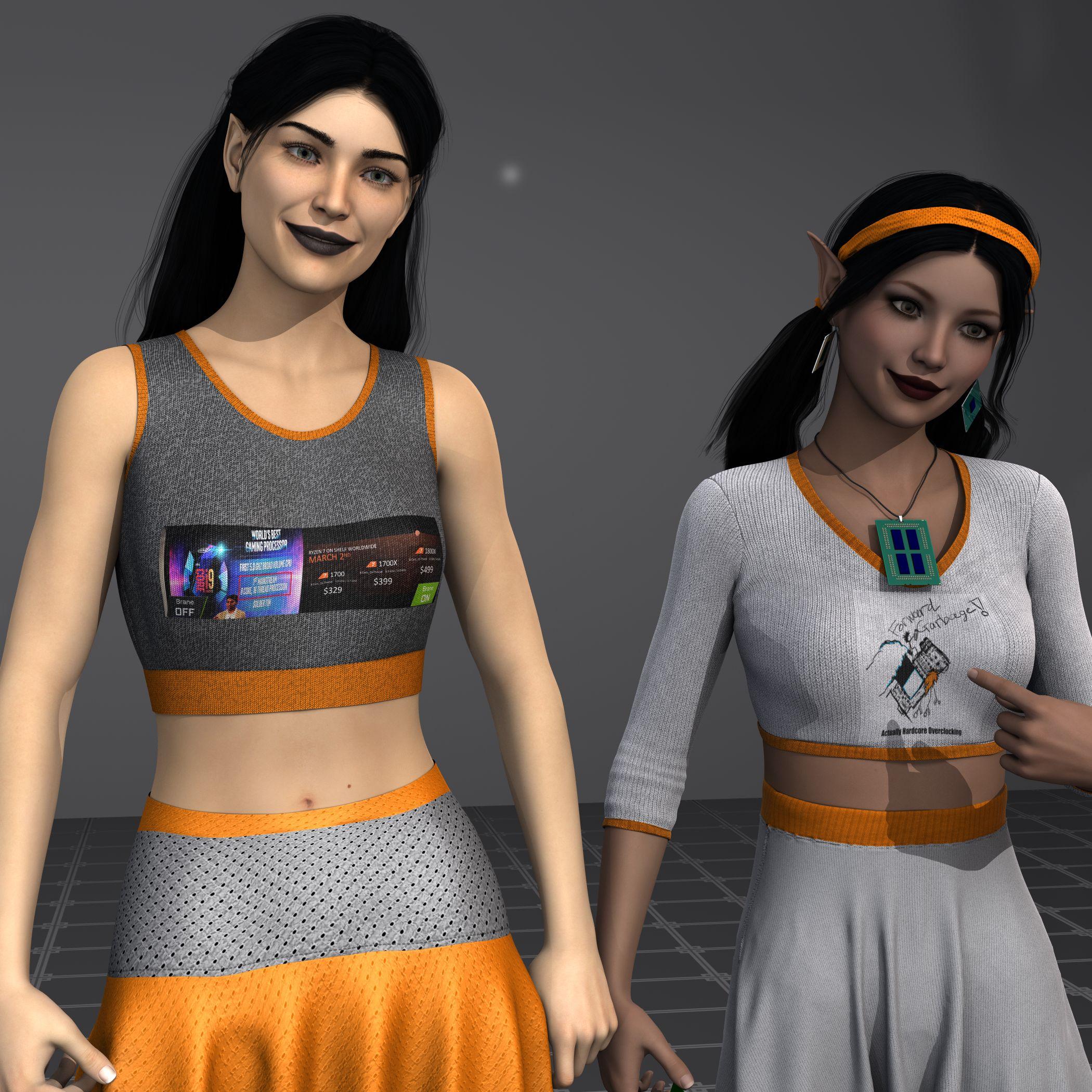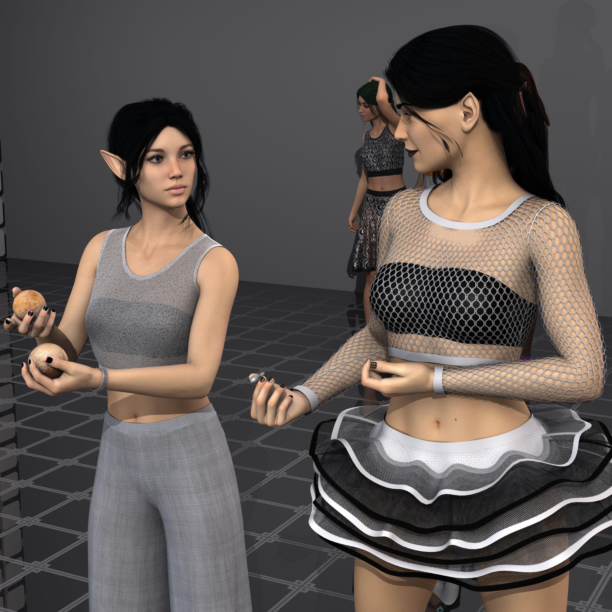 Ignore Zyra (far left) for now, she was just wandering by to feed the Microraptor and Archeopteryx. As for the Ninive6 crew, from left to right, FWSA Amalthea (in the lime Jungle Girl outfit) and (gypsyangel) Larian (in the Elven Fantasy-kini) are both in the Ninive6 Pro bundle to the left of Ninive6 (in the Arthurian Dress, included in the pro bundle). FWSA Amalthea is the only one in the Pro bundle with Elf ears, oops, my bad. RS Vivienne (in the pink-trimmed Twisted Dress) also includes her own Elf ears, she is not in the Pro bundle. And last, well, all I have is a name and a receipt for buying her, (3aEPSB ?) Harmony (far right) with her own ear shape dials.