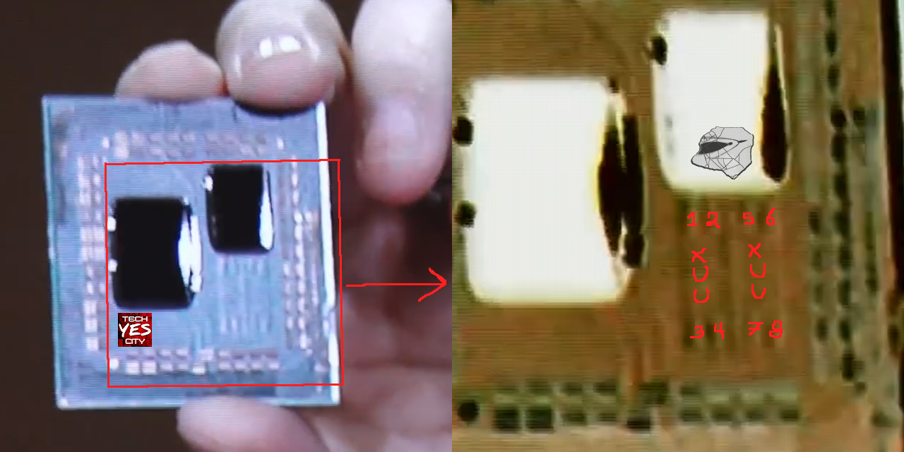 Looks like there may be something there. The second is a much better look at the same CPU screen capped from PCWorld's vid, and shows the copper trace patron far better.
