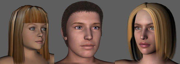 Hair Design the Easy Way! Use 8 different base style - cut, shape, stretch to create new hairstyles. Use accessories such as sunglasses, hats or bows. Color your hair and render.