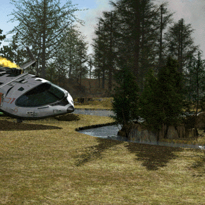 The premise is that we have a small microlight with 2 POB (our hero and heroine) flying away from a massive explosion. The kind of thing we've seen 1000 times on hollywood blockbusters - lots of smoke, lots of flame kind of thing.
