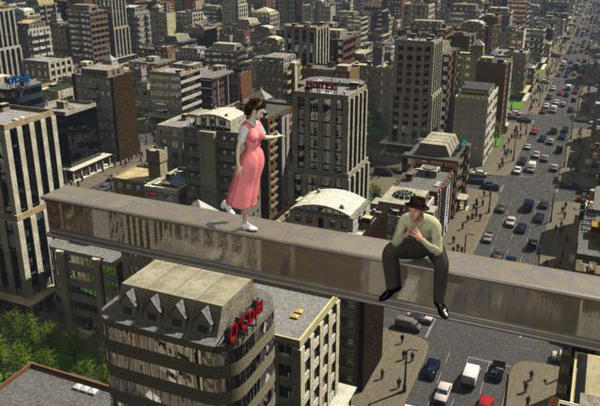 I threw in a girder, an M4+30s workingman clothes, and Genesis 2 female with Ringo's new hair. Sort of like one of those 1930s photos with the construction guys sitting on the girders having lunch.