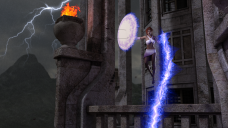 I've reworked the lightning to extend from her palm, and positioned it to show her attacking something off camera. I've also shifted her gaze and expression a bit to match.