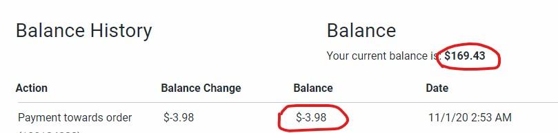 My store credit total is OK in one place now, but the details are still wrong. Balance one place is over $169 (correct) and in the details (-$3.98). And as someone else mentioned, the date/time is now 6 hours different than it used to be with no explanation why.