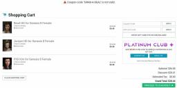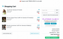 Note that the "Shop Now" list includes a Fast Grab (Orlean's Armor for Genesis 8 Male(s)), so I thought that was the trouble. So I just put the first three items that come up in the Shop Now list for me, and it rejects the SIXTY-MEE coupon and the GRAB-A-DEAL. I am not a PC+ member.