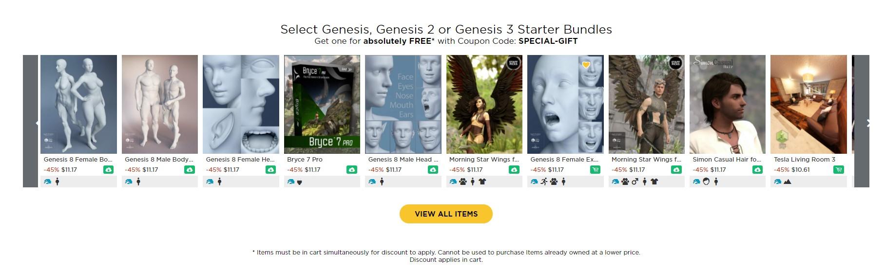 • This was mentioned earlier specifically for the Gen 8 bundles, but no Daz Originals are getting 20% off for PC+ users.