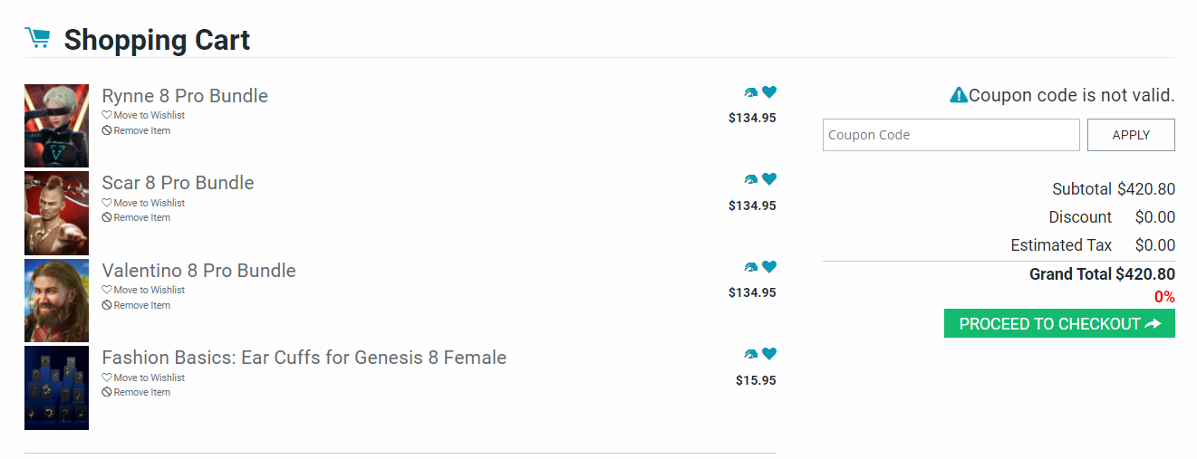 Ok, I was able to use the "GIMME-MORE" coupon now, but not all products can be installed. I bought Aiko 8, Miko 8 and Daisy 8 (no bundle), but only Daisy 8 can be installed. Both Daz Central and DIM don't work, DIM says "download failed!" for Aiko and Miko. Is this connected to the store? Might be worth a ticket...
