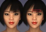 First I thought it's part of the hair clipping into the forehead. But there is a morph that moves the bangs away from the forehead and even with that turned all the way up, I still get this weird line.