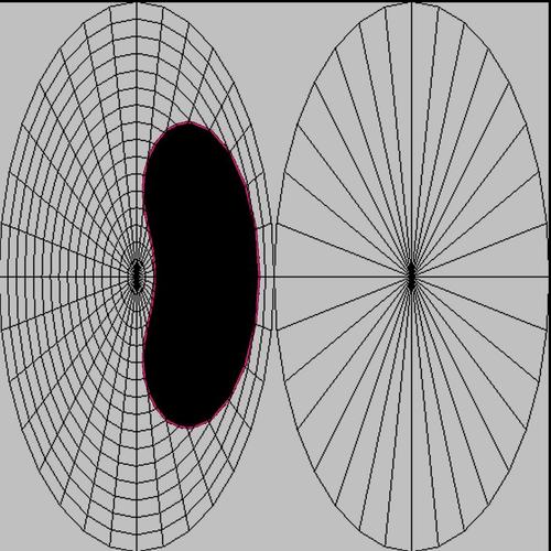 figure 5 - opacity map with finns - note how the lines need to be curves in the opacity map to obtain straight lines in the posed model