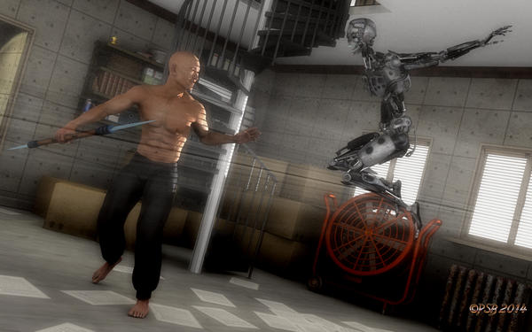 Rendered in Carrara 8.5, with a little throwback content from Poser 5 Don as a mentor in legacy Poser 5 robes and legacy Poser 5 eastern building. Some poke-through correction in Photoshop.