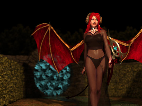 The image I'm posting here (previously posted to the gallery as well) I had fun creating, she's a character I've had in my head for awhile. I'm pretty happy with some aspects of it, I like the pose and expression, I'm trying to convey she's laid back but confident, attractive to humans (and she knows it) despite some of her demonic features, and she's probably a bit of a wise-ass. The outfit is not achieving what I envision in my mind. While I like the idea of the sheer robe because I think it fits her personality but I also don't want it to be so revealing that skin exposure becomes the focus of the image. I render my share of pin-ups, but I wasn't going for that here. However, the under-dress ended up kind of bland, I need to find something more interesting to take its place.