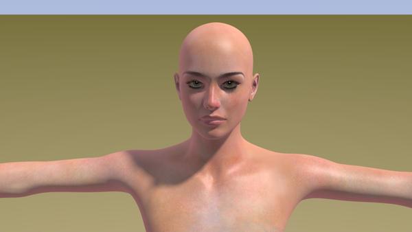 This image has the exact same skin texture for both models. The difference is that I added a multiplier to the color channel and mulitplied the image map with a very light tan color.