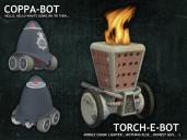 Leaving just the TorchieBot, a mobile ciggy lighter who's a bit of a grumpy fella as he's trying to give up smoking. Plus the Coppabot, who guards the lighter. Seriously though these are purely parody pieces, nothing else.