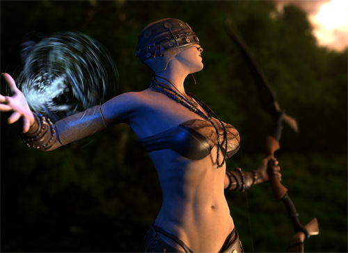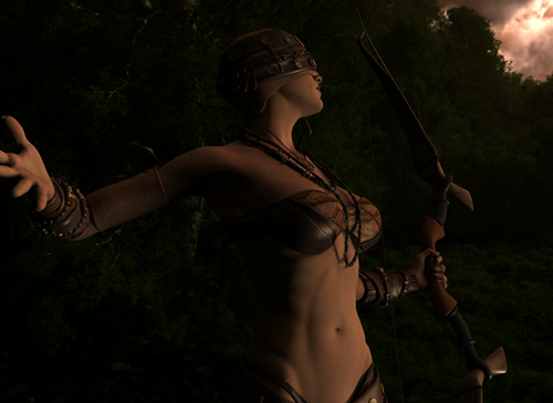 If memory recalls,I think I focused the depth on the Arkana's neck, blurring her hands, bow and background nicely.