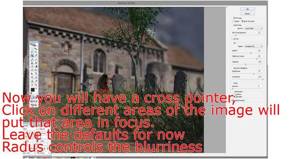 I went and made a bunch of images showing how I do it with Lens Blur. The keyboard controls are Windows, I don't know mac's equivalent.