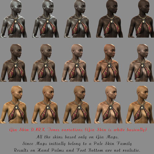 Initially, it has been designed to allow skin tones variations within a family of skins. When previously it has been told that there was no way to get realistic black skins over the whole surface of a white skin image map, this means that actually, you will generally have problems of realism on very specific skins parts, such as the palms of the hands, some genitals, bottom of the feet, because each skin family (dark, medium, white) has on these parts of the body very specific characteristics of colour variations regarding the rest of the body. The problem happens ONLY when you go out of these charactertics of this skins base.