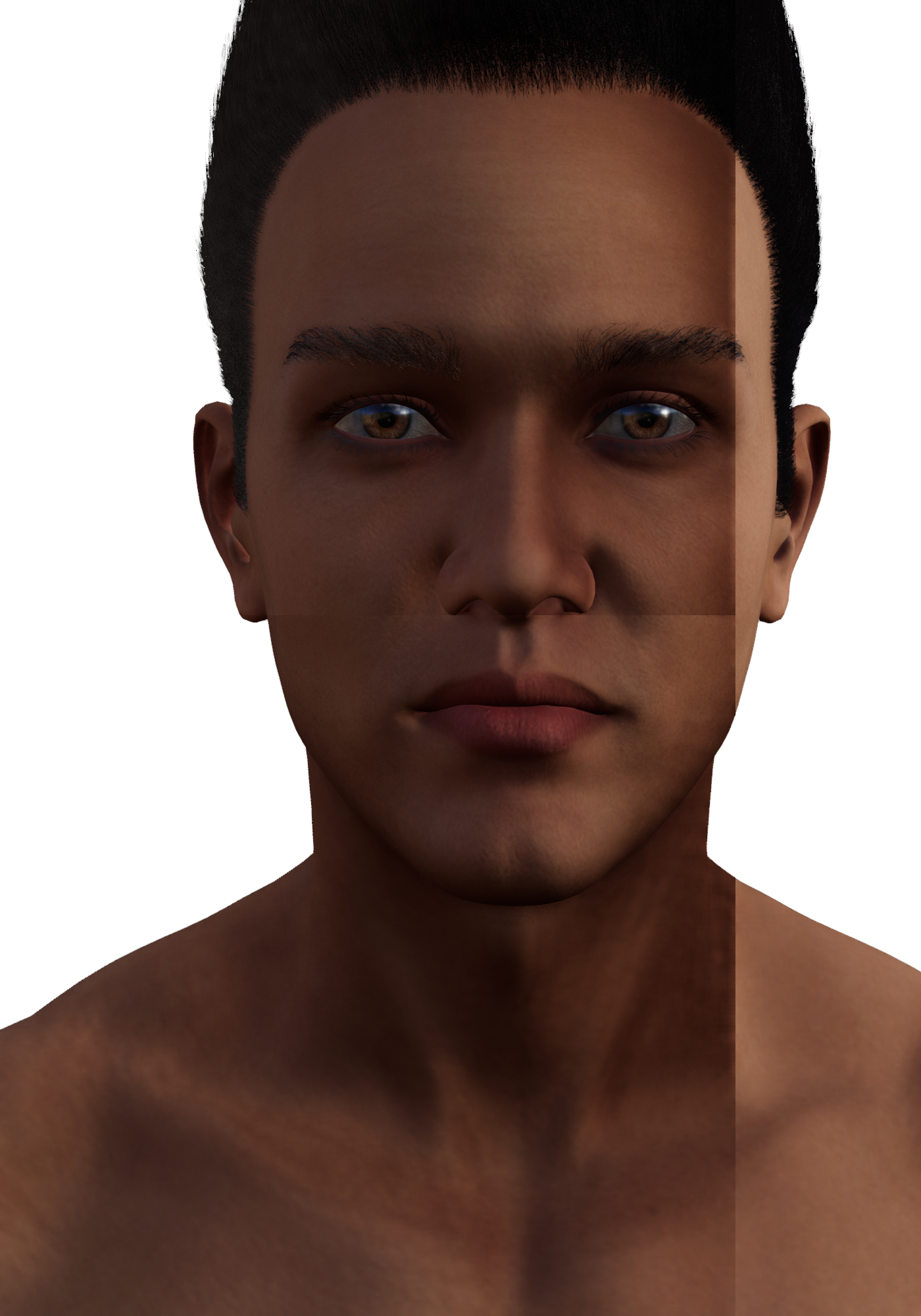 Render Size 1000x1000 (maybe a very faint line across his forehead?):